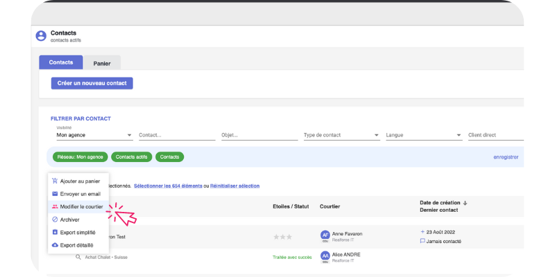 Étape 1 : Cliquez sur Contacts -> Contacts Actifs. Sélectionnez les contacts dont vous souhaitez modifier le courtier.