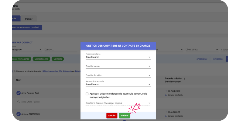 Étape 3 : Choisissez le nom du courtier sur lequel vous souhaitez modifier les contacts et cliquez sur “Modifier”.